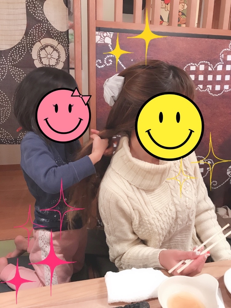 Nちゃんの長い髪を編んでくれてる🎀
