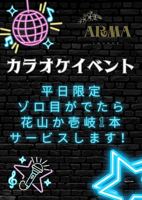 なんと‼️カラオケを歌ってゾロ目が出たらキープボトル一本プレゼント🎁✨