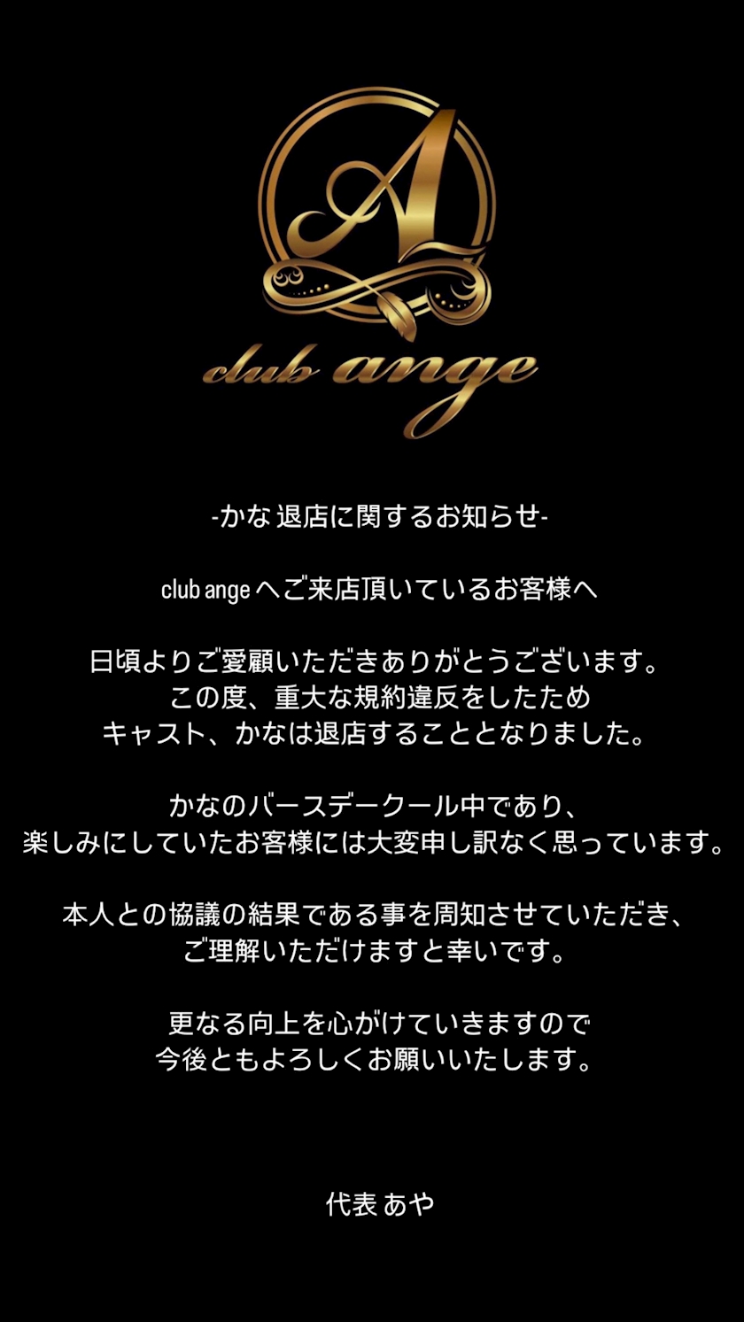 -かな 退店に関するお知らせ- - あや - club ange・アンジュ - 豊橋のキャバクラ