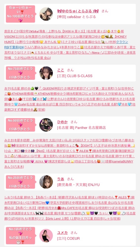 ゆなさん つきのさん ♥️ERI♥️さん ヒメさん