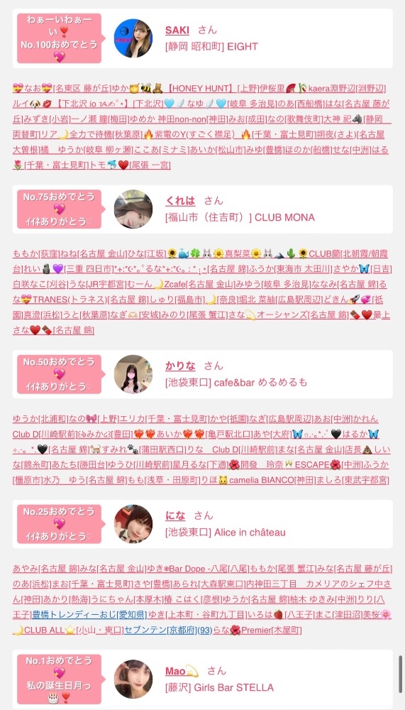 らな【池袋セカンド】さん ありささん 🐮うた🐮さん