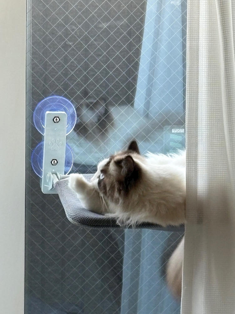 窓ハンモックでくつろぐ