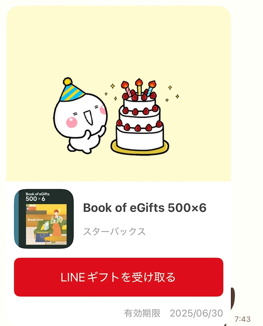 次の日の朝スタバのギフト送ってきてくれてた😭