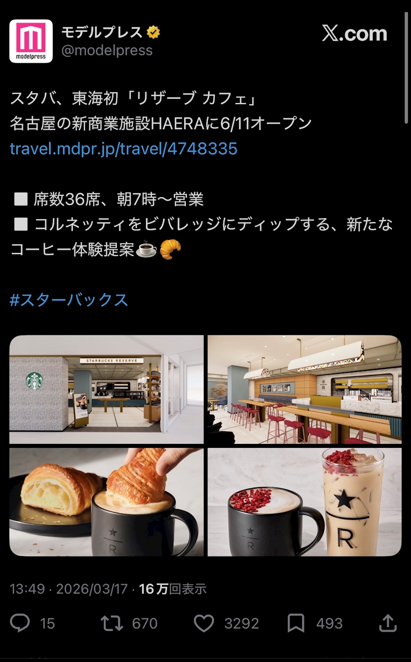 名古屋にスタバのリザーブカフェ出来るらしい✩︎⡱