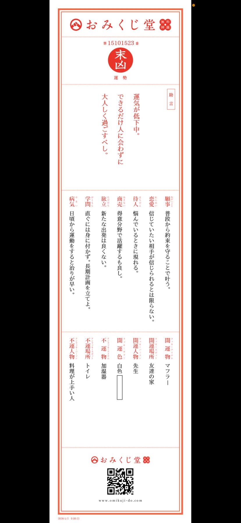 はいこちら、私の今年のなったネットみくじ