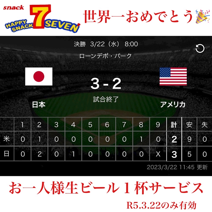 優勝おめでとう🏆おめでとう記念サービス🍺 - 🌹ママ🌹 - 田原 スナック・Seven