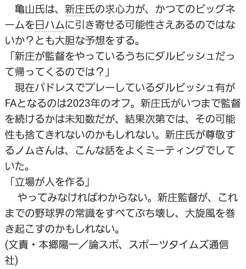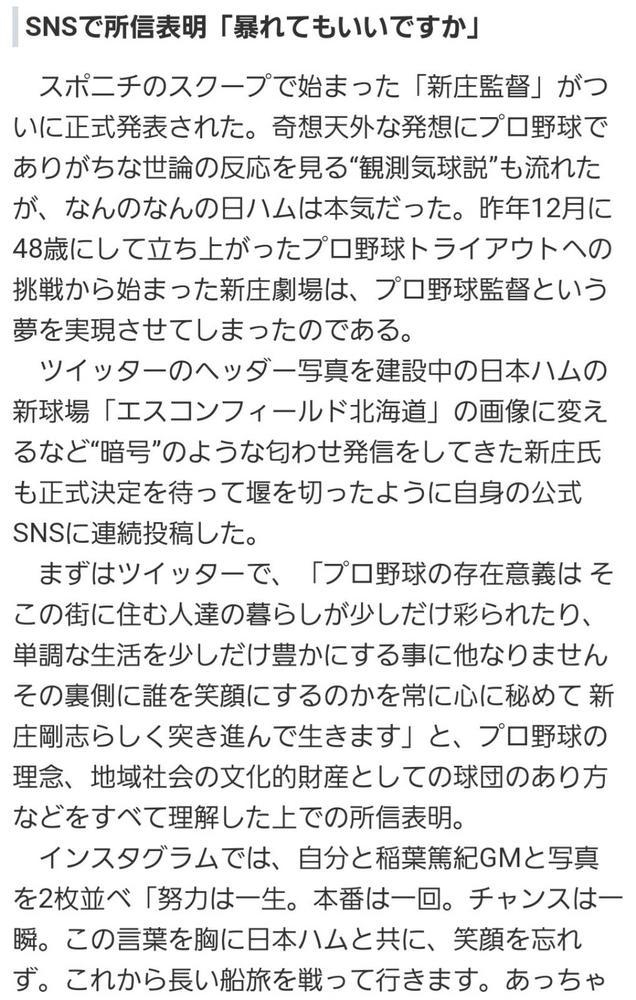 新庄さんが監督に就任するかもしれない