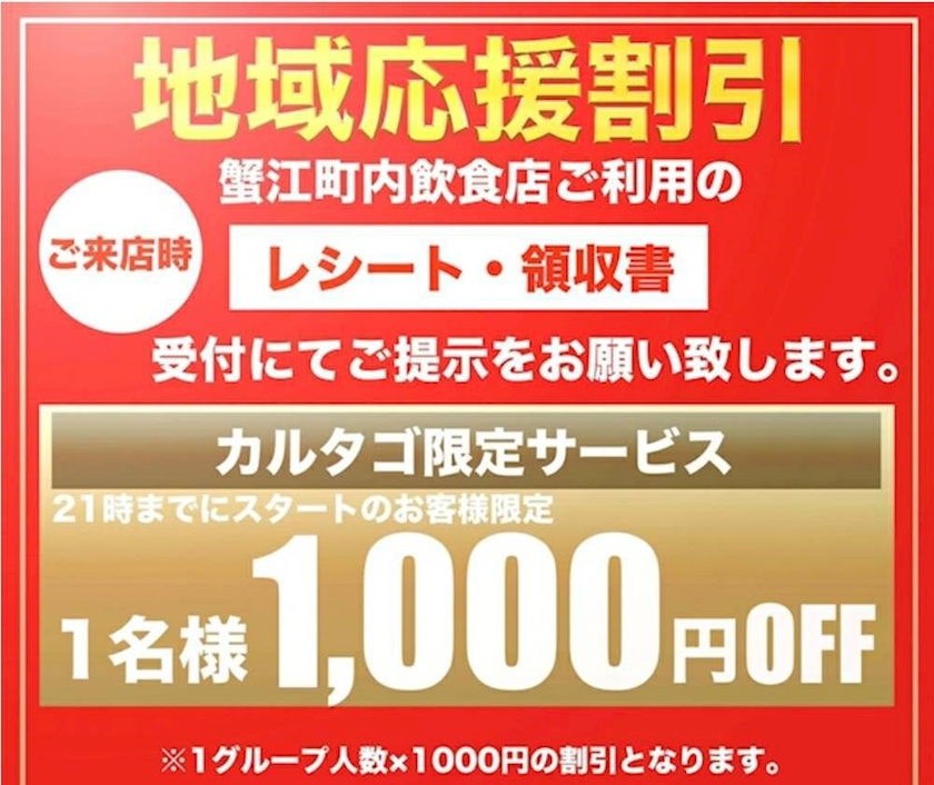 蟹江町付近の飲食店ご利用レシート提示