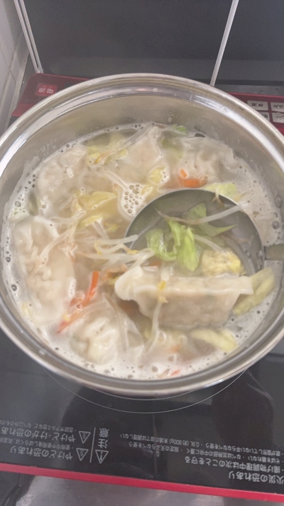 凍ったままの餃子が案外すぐ柔らかくなってくれてびっくりした‼️