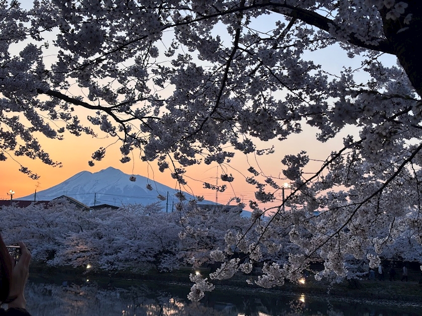 岩木山と夕焼けと桜