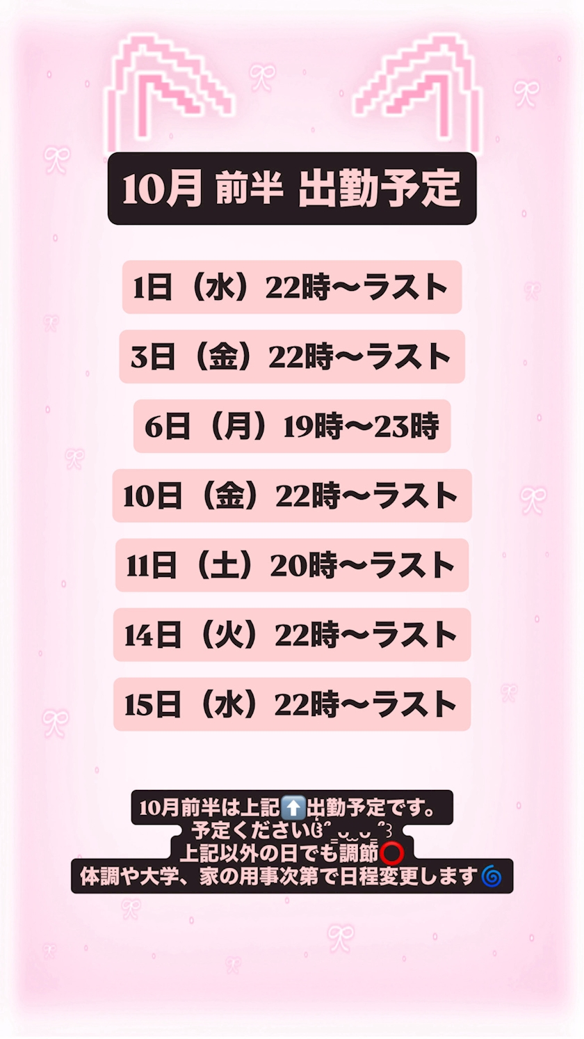 1️⃣0️⃣月前半の出勤予定です🎶