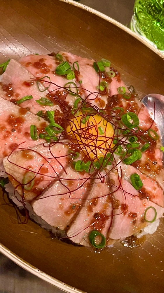 仕事終わりにローストビーフ丼✨‼️罪な味してた。みんなに分けてあげたいᐡ ̳ᴗ ̫ ᴗ ̳ᐡ♡今日は21時から🎀🎶