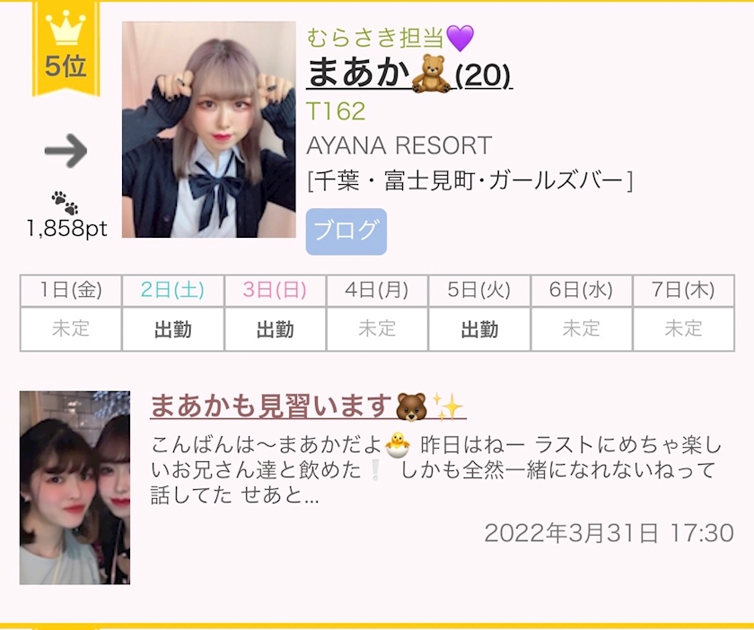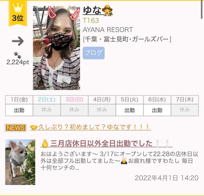 4月も😉 - うっちー(部長) - AYANA RESORT・アヤナリゾート - 千葉・富士見町のガールズバー