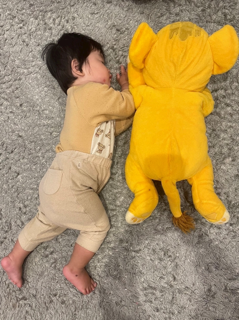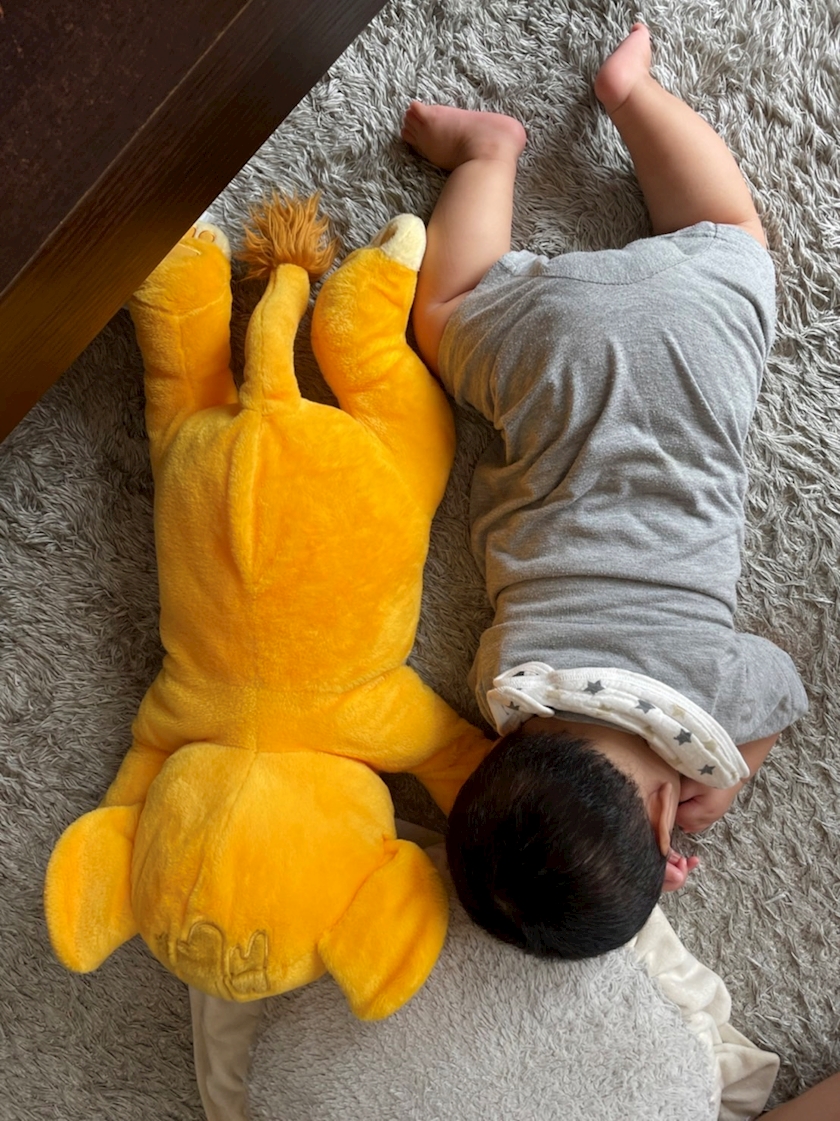 1番下の息子の話なんですが、ライオンキングのシンバのぬいぐるみと同じ位の大きさだったのに