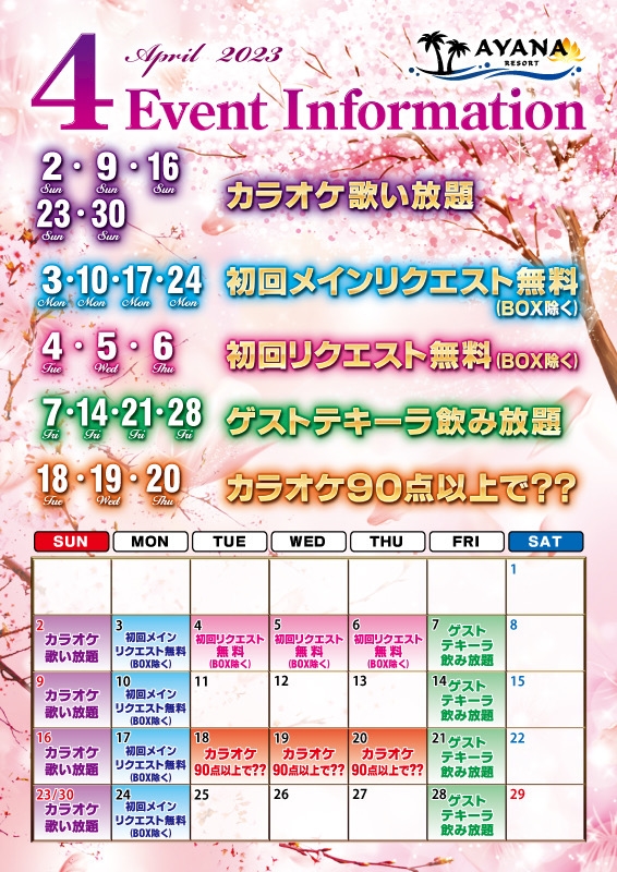4月イベント情報! - うっちー(部長) - AYANA RESORT・アヤナリゾート - 千葉・富士見町のガールズバー