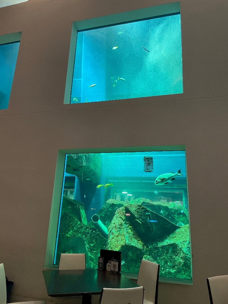 店内には巨大な水槽がある
