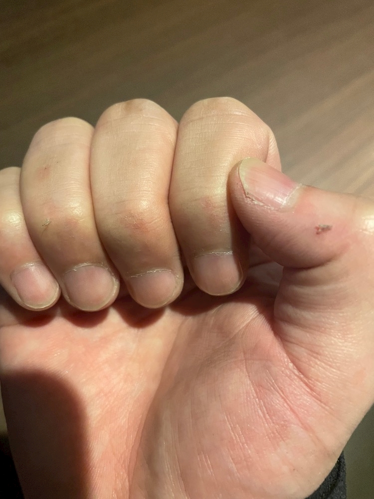 指擦りむけて