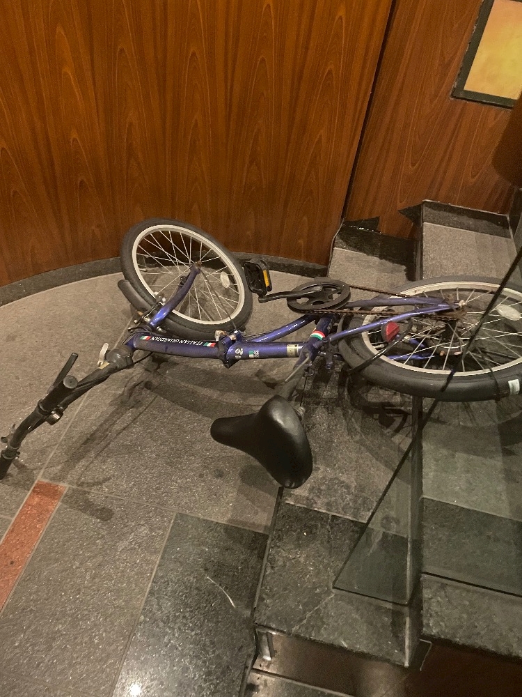 私の自転車をぶん投げてました