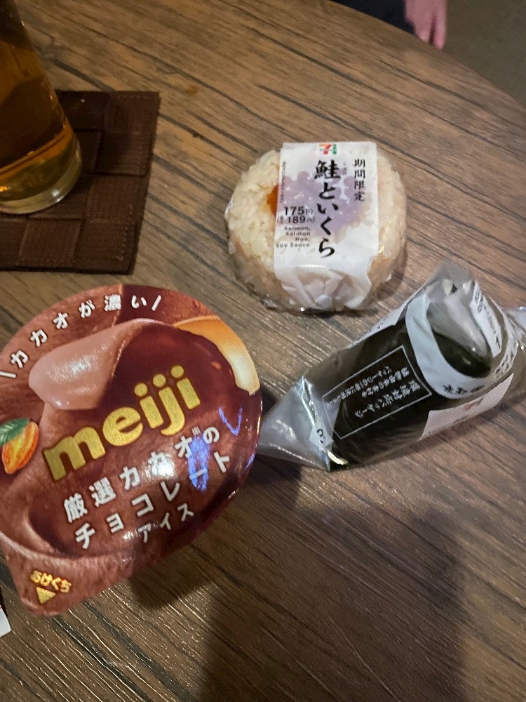 おにぎりとアイス私の好きなものいつも買ってきてくれてありがとう