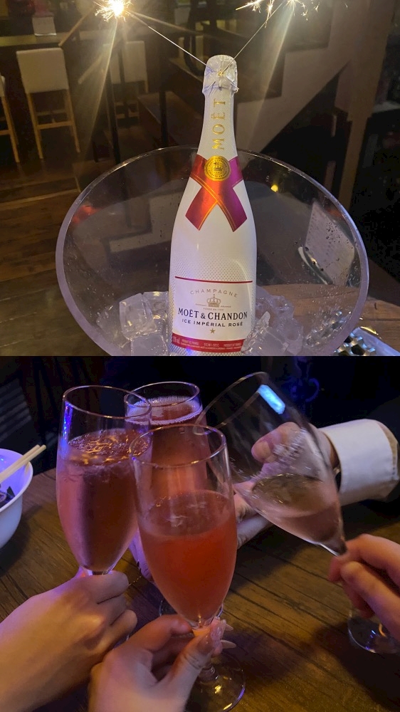 うちの大好きなキラキラとぴんくのシャンパンもあけてくれて🥲💖