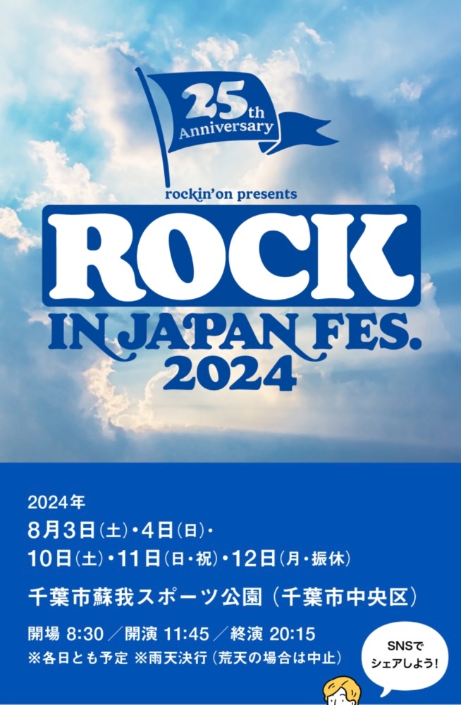 今日の12時くらいに ROCK IN JAPANの第1弾アーティスト発表あるんだよねぇ😳😳😳