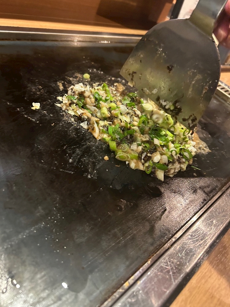 せっかく鉄板焼き来たからもんじゃたべよー!