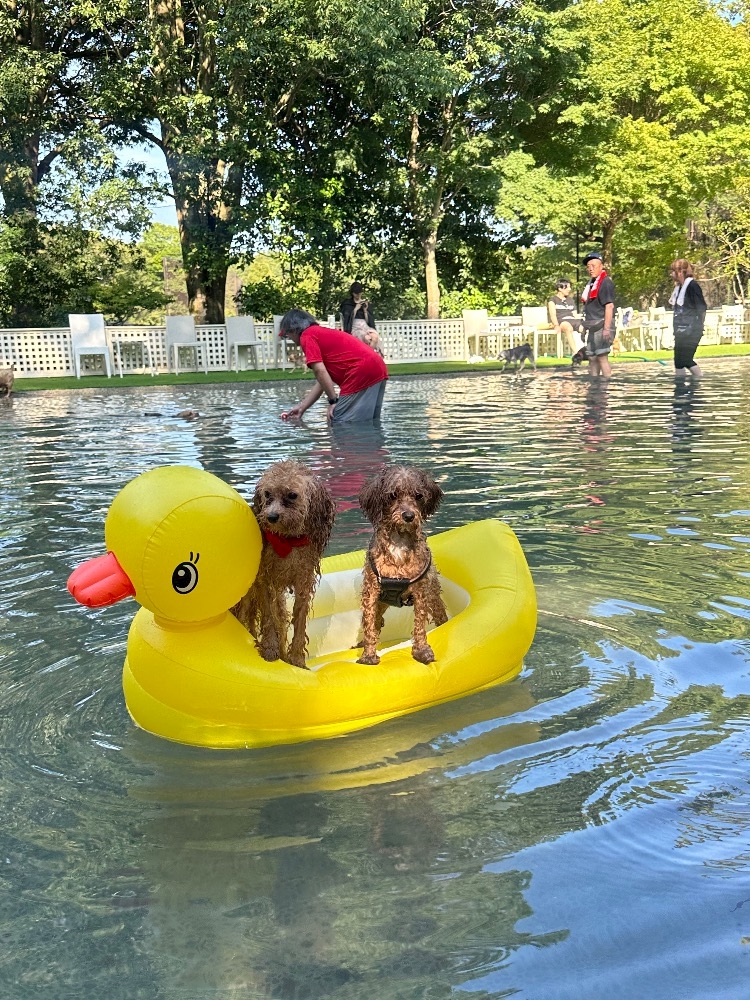 ぷんたん初めてのプールで、リード解放した瞬間プールに気付かないで飛び込んで焦ってた🤣