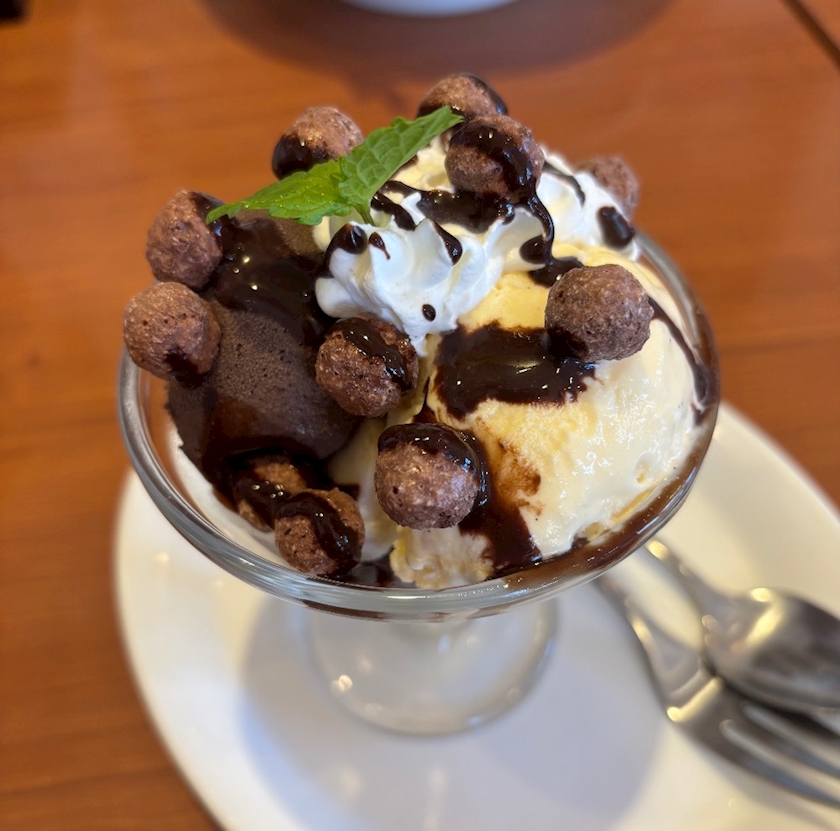 チョコとバニラのアイスが乗ってるパフェが1番好き!!
