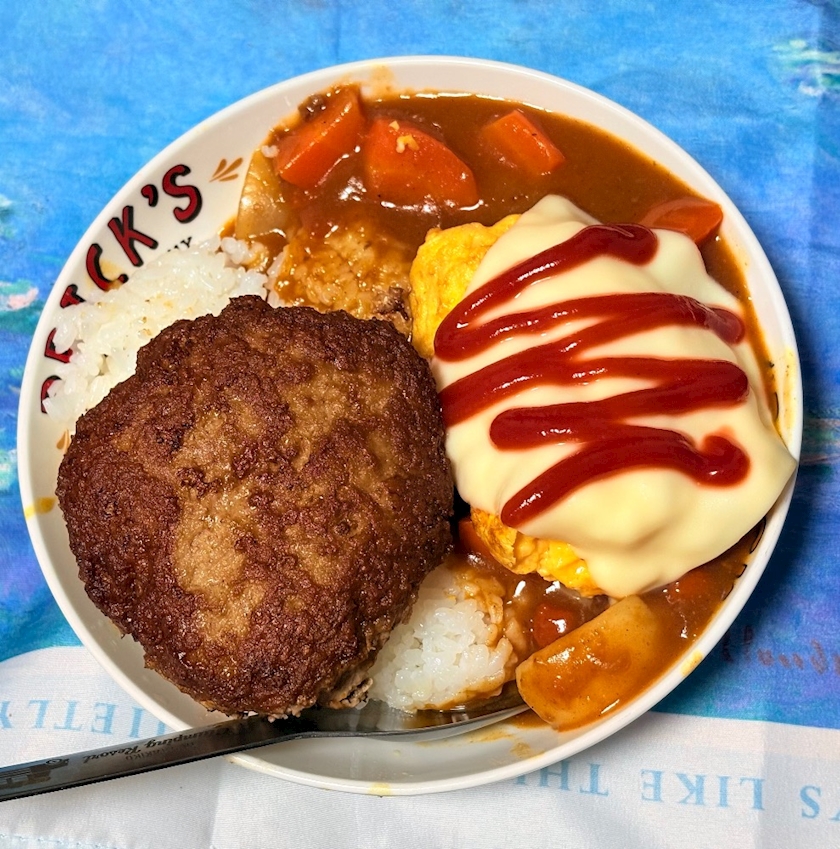 ハンバーグチーズオムライスカレー