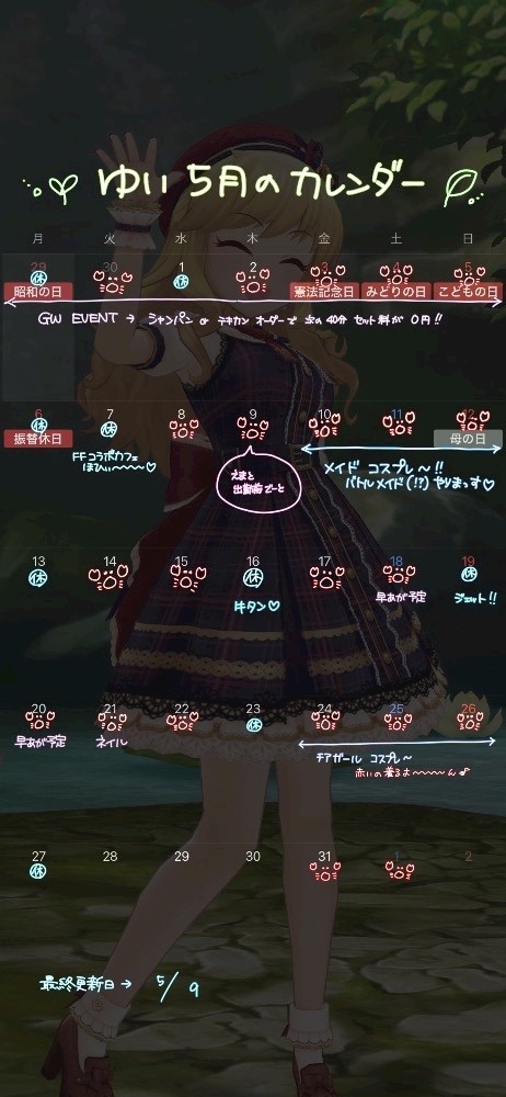 これはきのう更新したカレンダー