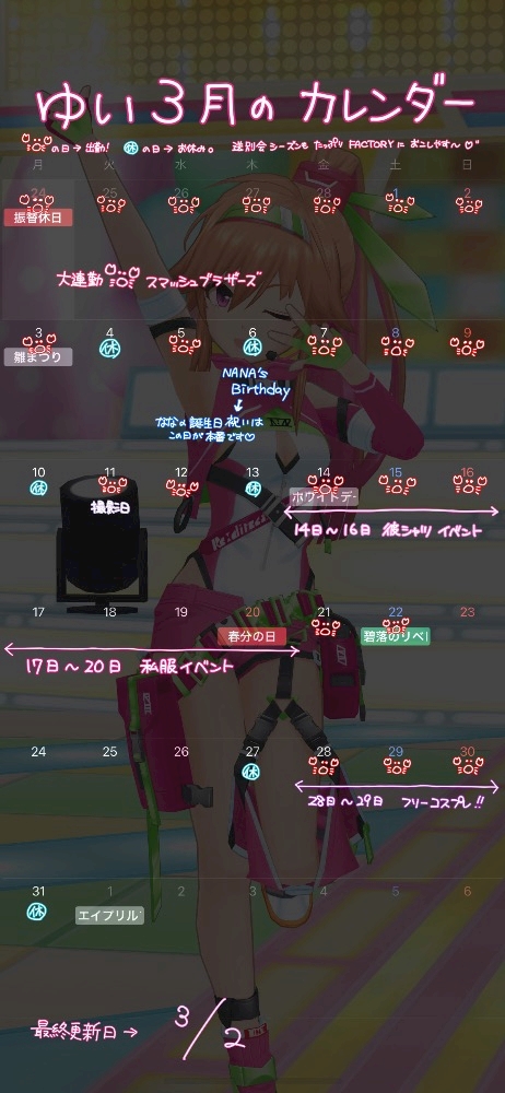 - 本日20時🦀妹とケバブとカレンダー(部屋とYシャツと私的な)