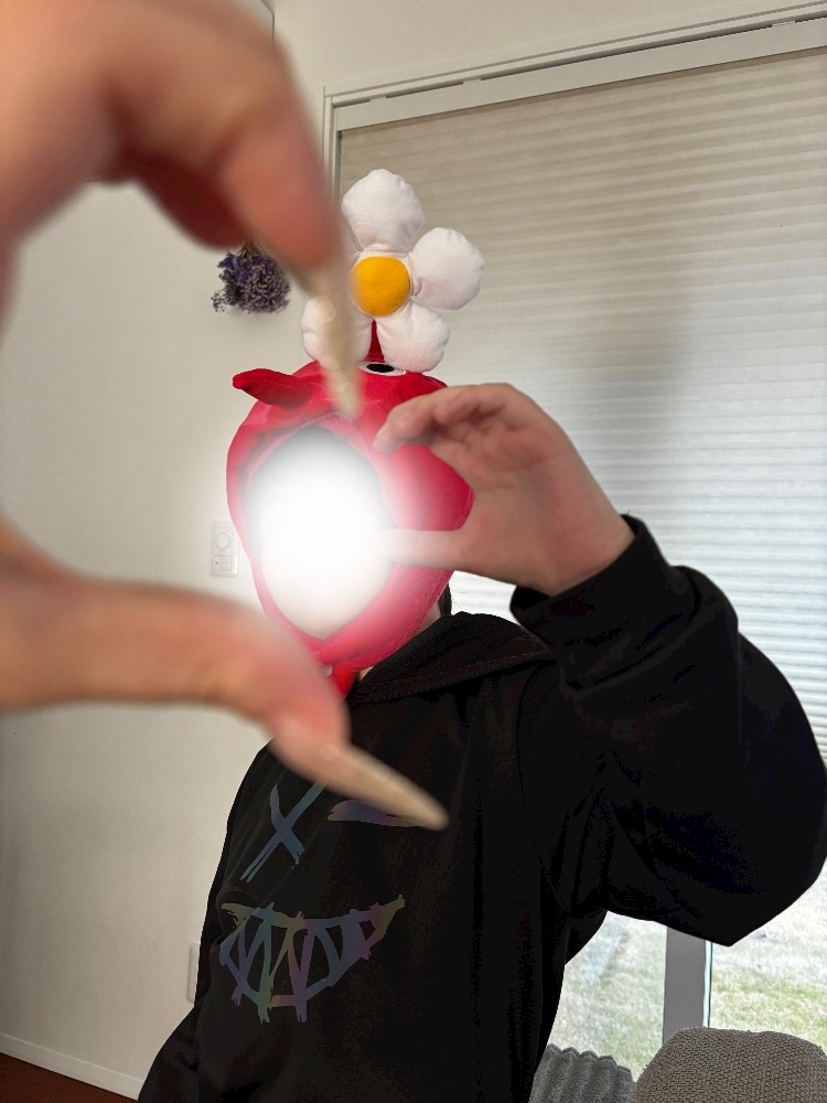 弟のために取ったピクミン被せました🌱