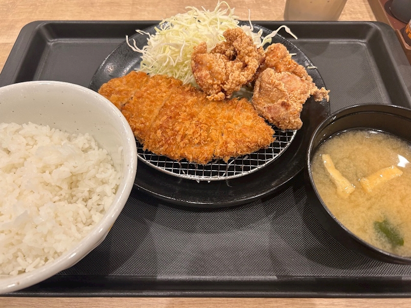 帰りに空腹限界だったので松のやでとんかつと唐揚げ食べました😋