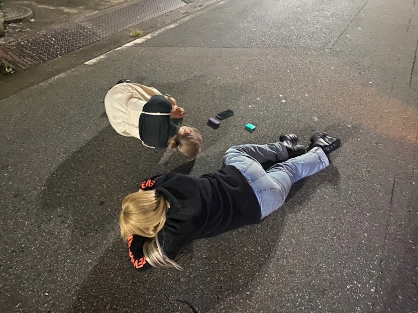 朝方になると力尽きて店前で転がってる