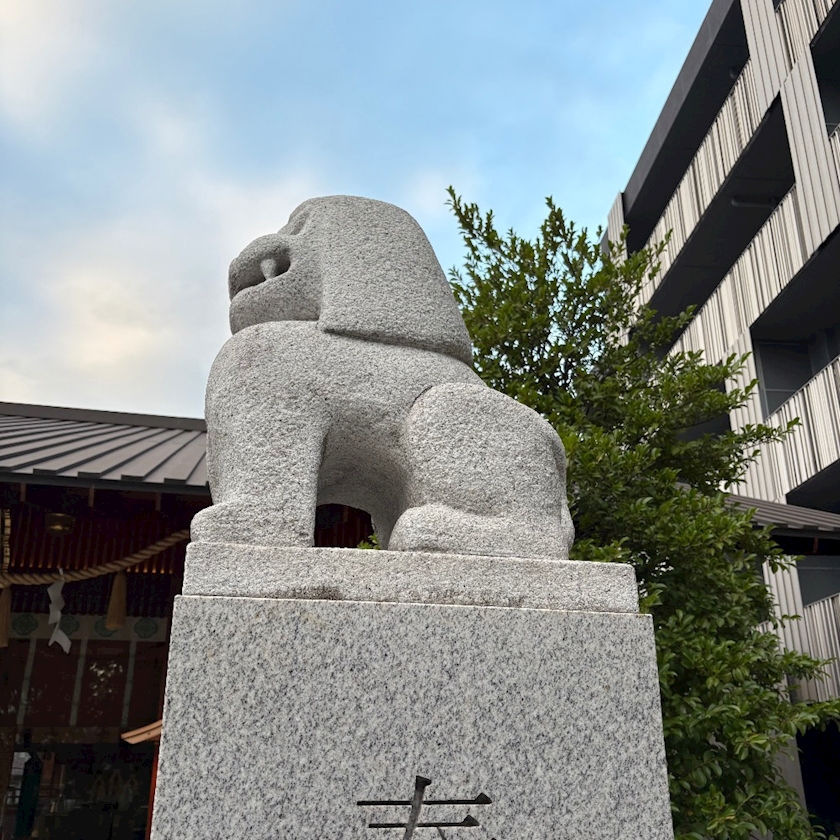 初めてみるフォルムの狛犬、、