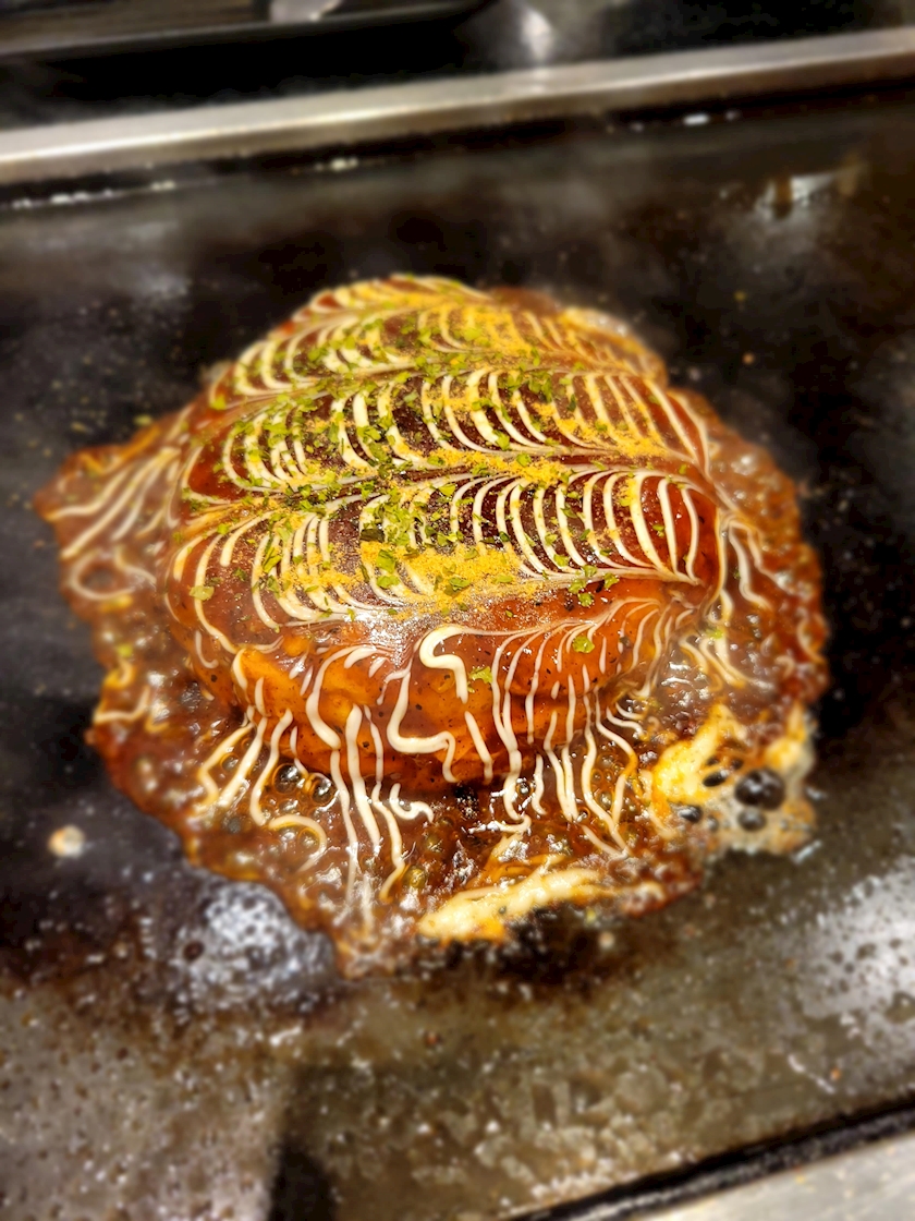 明太クリームチーズのお好み焼きが