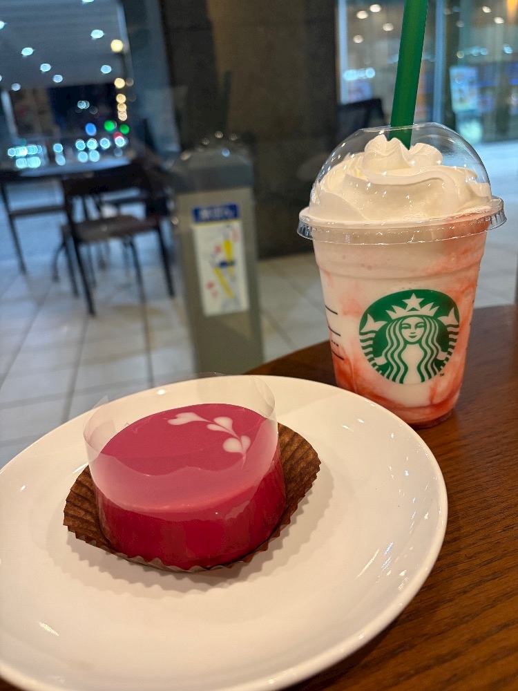 - スタバ新作【スターバックスストロベリーフラペチーノ】飲んできた~😆✨ルビー🌹💎チョコレートケーキも🍫❣️