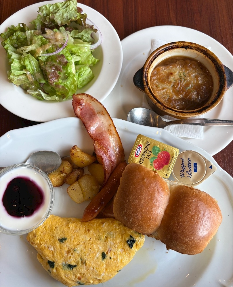 贅沢な朝ごはんを食べ
