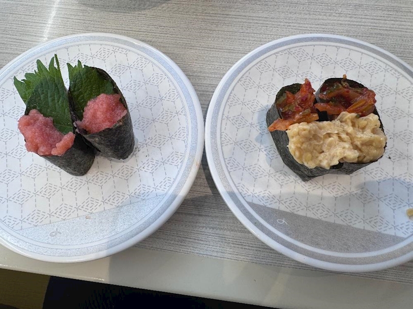 軍艦は大葉たらこ、納豆キムチ、
