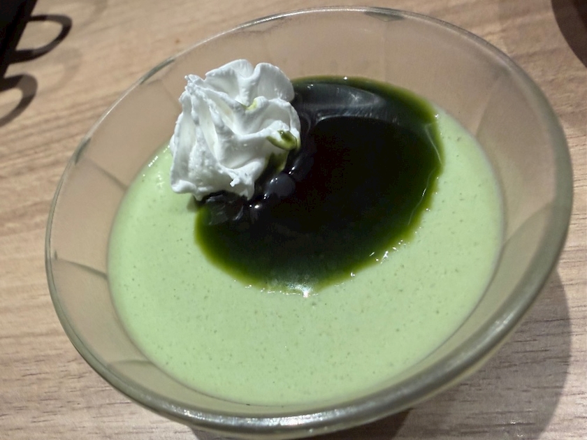 プリンは甘めの抹茶で