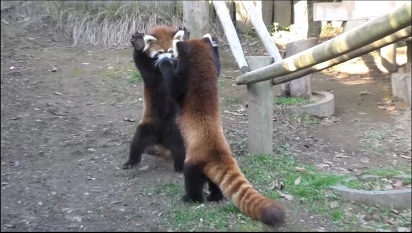 レッサーパンダの威嚇ポーズ