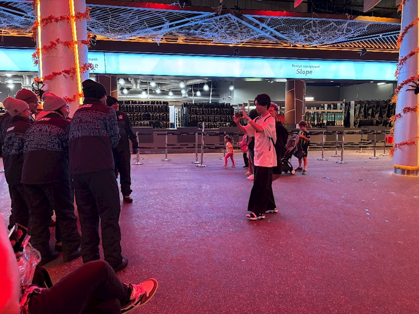 スキー用具を借りて⛷️チャレンジしたのですがそもそもスキー靴の履き方覚えてなくてとーいさんに手伝ってもらって装備したら係員さんに追い出されました