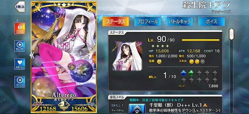 アルターエゴ 殺生院キアラというサーヴァントを当てました。