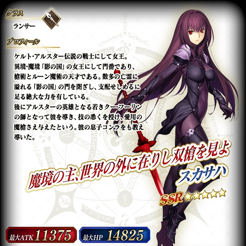 スカサハはFGO初期の時代から実装されております。