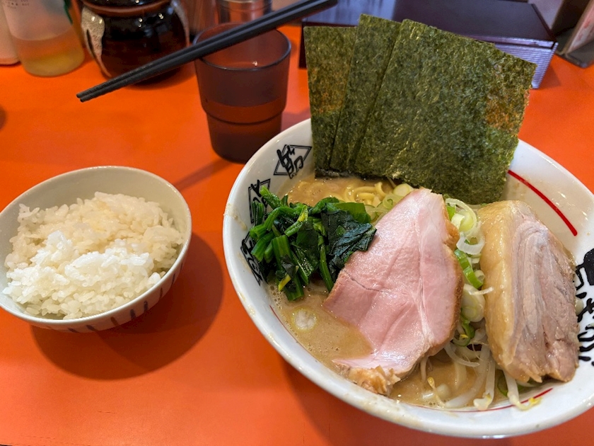 二郎系と家系の麺がスープに絡まって美味しかったです。