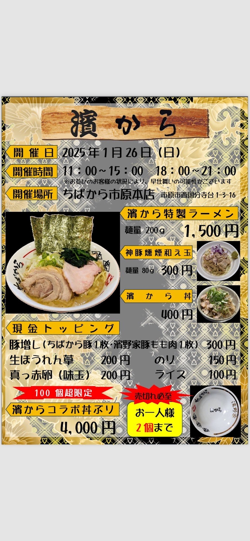 ちばからは、濱野家とコラボしているラーメン屋としても話題になっており、