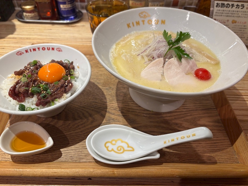 ラーメン×ユッケの二刀流。