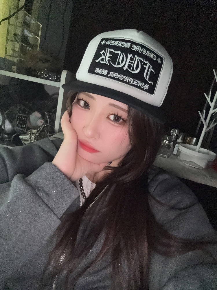 帽子を浅く被ると顔が小さく見えます