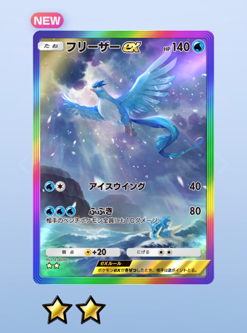 最近ポケポケばっかりやってるんですけど、昨日の朝イチでパック剥いたらフリーザーexで激アツでした☀️