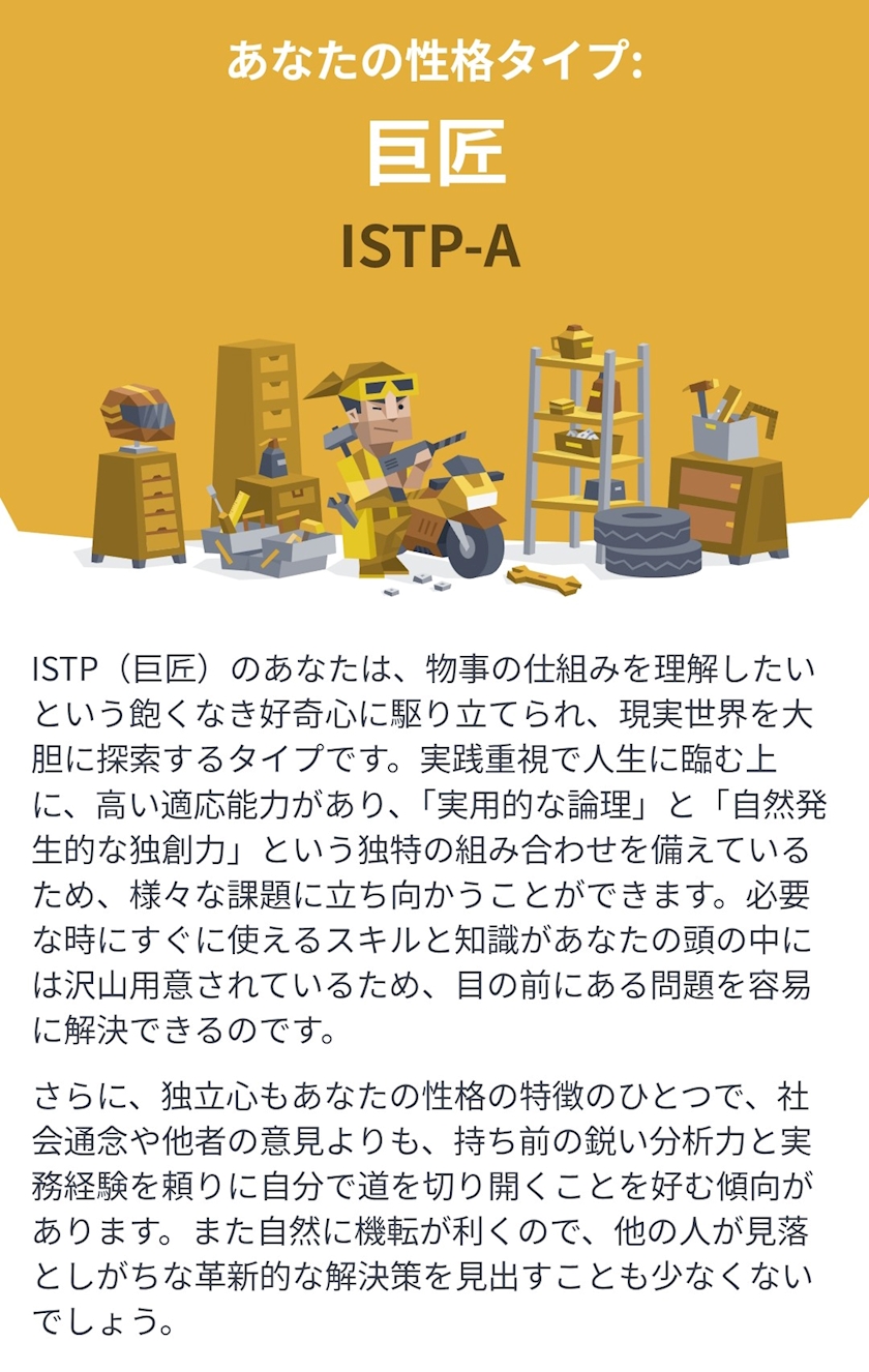 毎回変わらずISTPなので